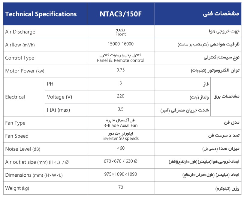- انتخاب سیستم از نوع بالازن و پایین زن با فن محوری آکسیال
