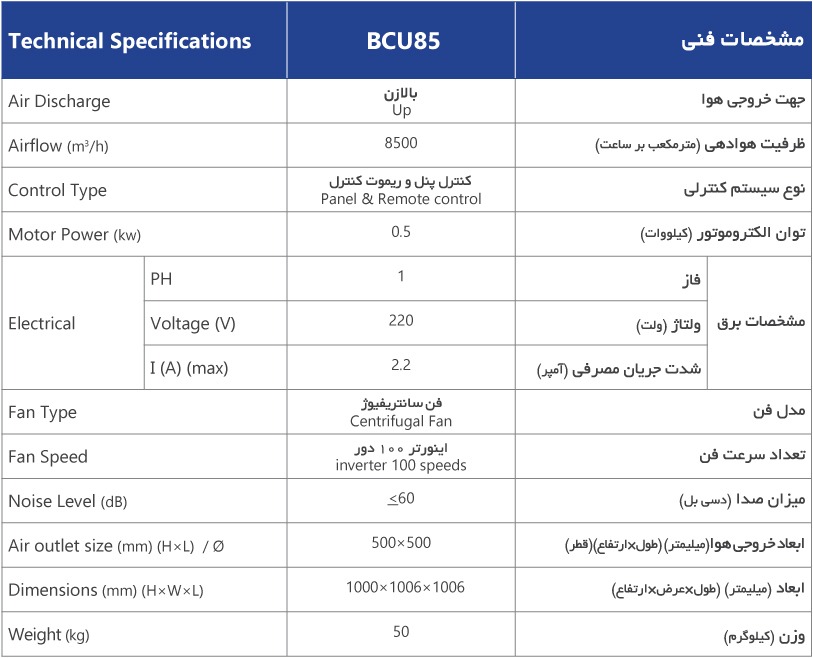 - قابلیت کنترل اتوماتیک و دستی دما و میزان هوادهی (ترموستاتیک)
